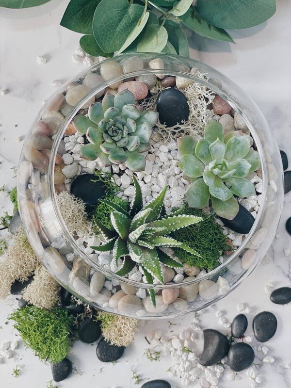 Create a miniature ecosystem to bring the beauty of nature into your home or office space with our Classic terrarium workshop. Engaging with nature cultivates a calming effect on the mind, reducing stress levels and promoting relaxation. Through this workshop participants will immerse into the world of succulents & gain environmental awareness. Each terrarium functions as a work of art; promoting tranquility and serenity.