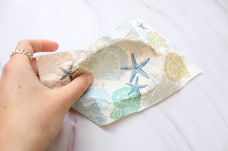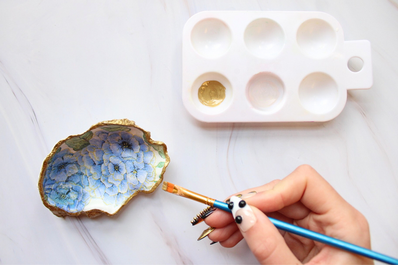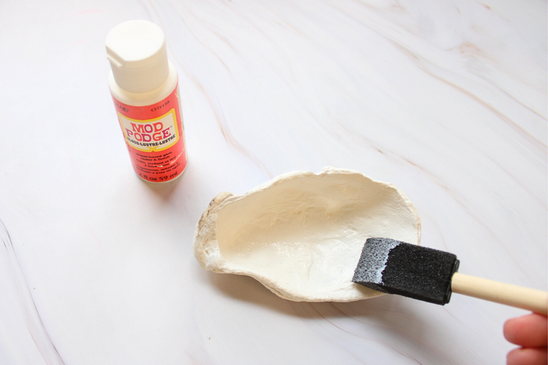 Kit Includes: Seashells, white & gold paint, paint brush, decorative napkin, Mod Podge, scissors.
