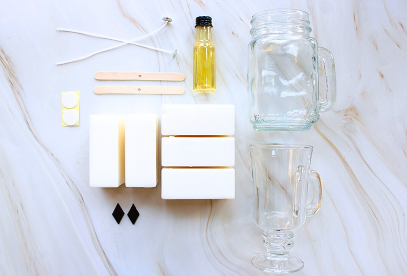 Kit includes: Irish coffee glass, mason jar glass, wax, boil bags, brown dye chips, scent, wick holders, wicks, wick stickers, and instructions. In addition, you need a stove top, pot, kitchen towel, and tin foil/wax paper, which is not provided.