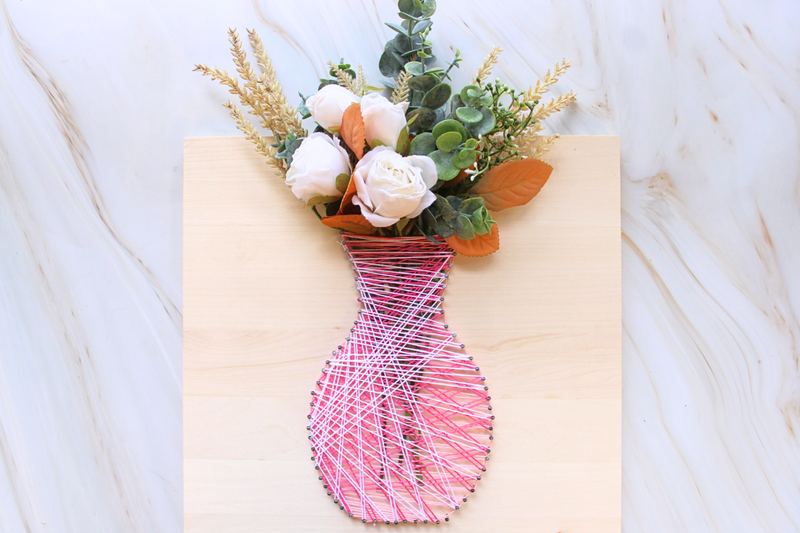 With guidance from our skilled instructor, you’ll hammer in a nail outline to create your very own vase shape, then bring it to life with a colorful string pattern of your choice. Once your string art is looking fabulous, you’ll channel your inner florist and finish the piece with beautiful white blooms for the perfect final touch.