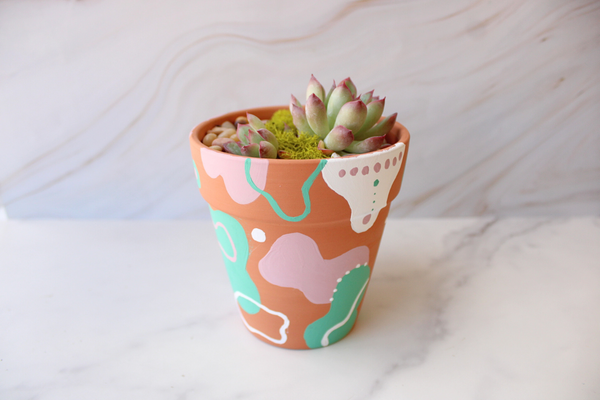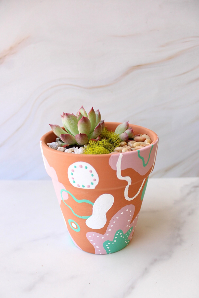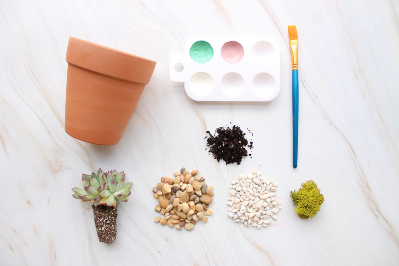 Kit Includes: Terracotta planter, assorted paints, paint brush, soil, succulent, and pebbles.
