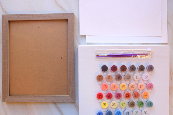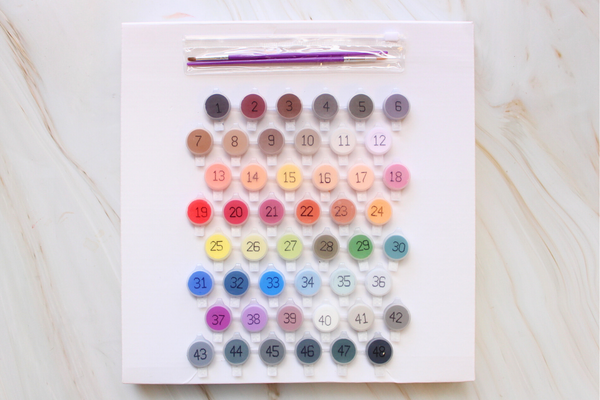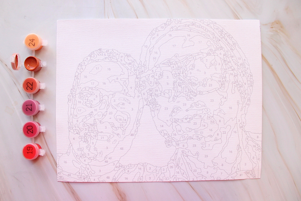 Kit Includes: 8x10in Canvas with pre-sketched artwork, personalized color palette to match your photo, brushes, disposable apron, and a 8x10in frame