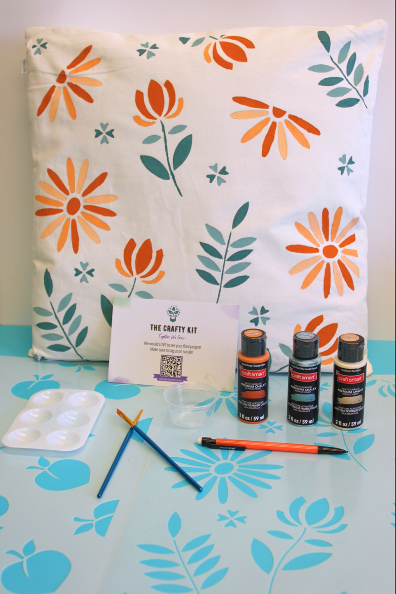 Kit Includes: Includes 18x18 pillow case and pillow, paintbrushes, paint, paint dish, virtual instruction and ground shipping