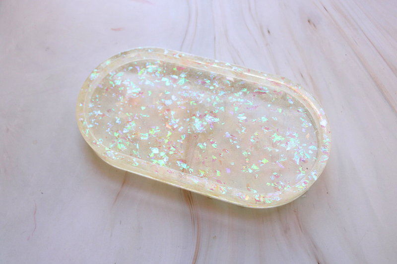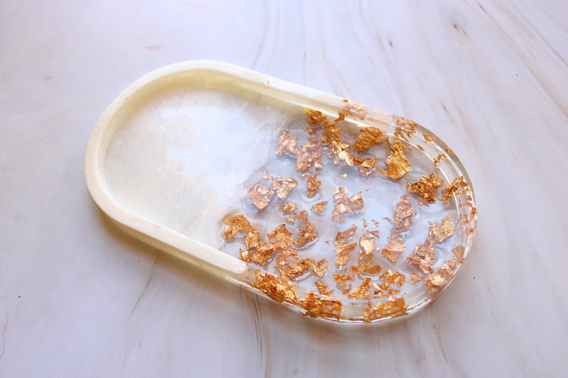 Kit Includes: 11x9 tray mold, handles, accessories (mica powder, gold flakes, and pebbles), and instruction.