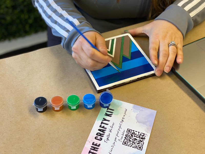 Kit Includes: Wood mosaic base, precut wooden puzzle pieces, paint pods and 1 oz glue