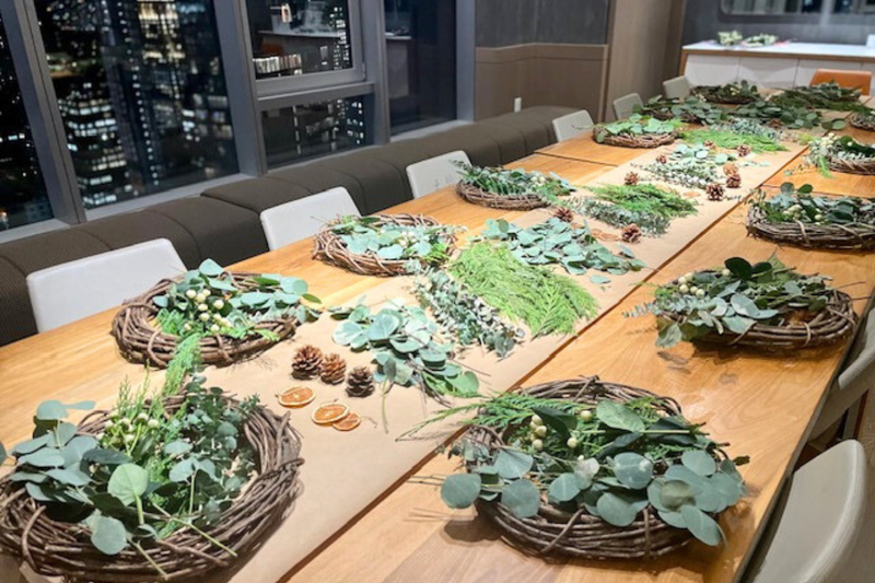 Looking for a unique team building activity that promotes collaboration, creativity and relaxation? Look no further than our wreath making class! Not only will this activity boost team morale and help build stronger bonds, but it will also give them a beautiful work of art to take home and display. Book your class today and let the creativity flow!