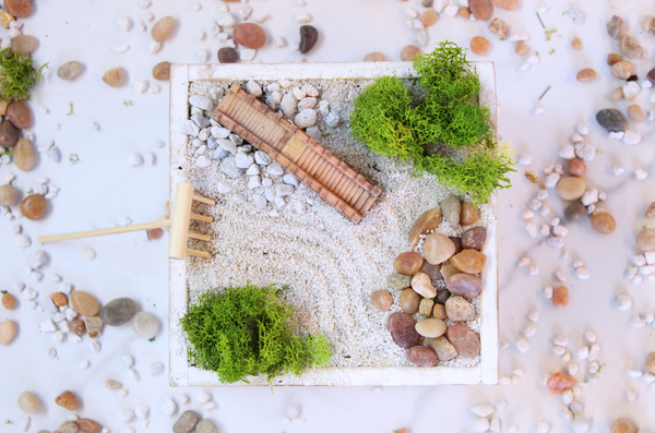 In this meditative workshop, you will be guided through the process of creating your very own Zen Garden. These functional terrariums are not only beautiful but also provide a tranquil and calming space for ease and focus. You will learn about the significance of Zen gardens, and how to use them as a tool for mindfulness and relaxation. As you create your garden, you will have the opportunity to express your creativity and personal style. You can arrange the sand and pebbles in any pattern you like, and use the rake and stamp to add texture and visual interest. The moss can be used to add a natural touch, and the wooden cube vessel provides a beautiful and durable base for your garden. Join us for this virtual Zen garden workshop and discover the art of creating a peaceful and harmonious space!
