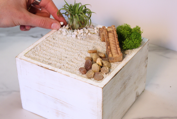 Kit Includes: Wooden Cube Vessel, Plant of Choice, Accessory of Choice, Sand or soil, Decorative moss, Decorative pebbles, Rake, Stamp Ground shipping + virtual instruction
